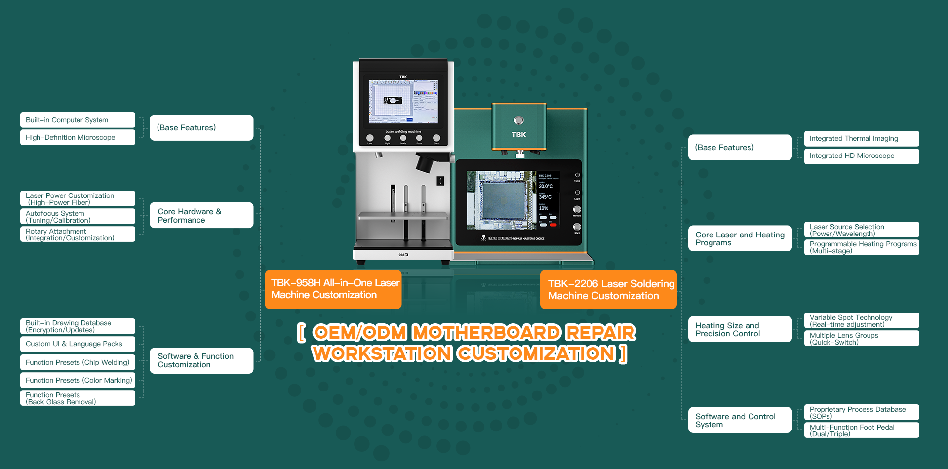 Hassas onarım ve çoklu uygulama sürecinin yeni çekirdeği olarak,TBK-2206 VeTBK-958H serisi, üst düzey teknisyenlerin verimlilik, doğruluk ve çok yönlülük konusundaki en üst düzey taleplerini karşılamak üzere tasarlanmış, kapsamlı ve derinlemesine özelleştirme seçenekleri sunar.