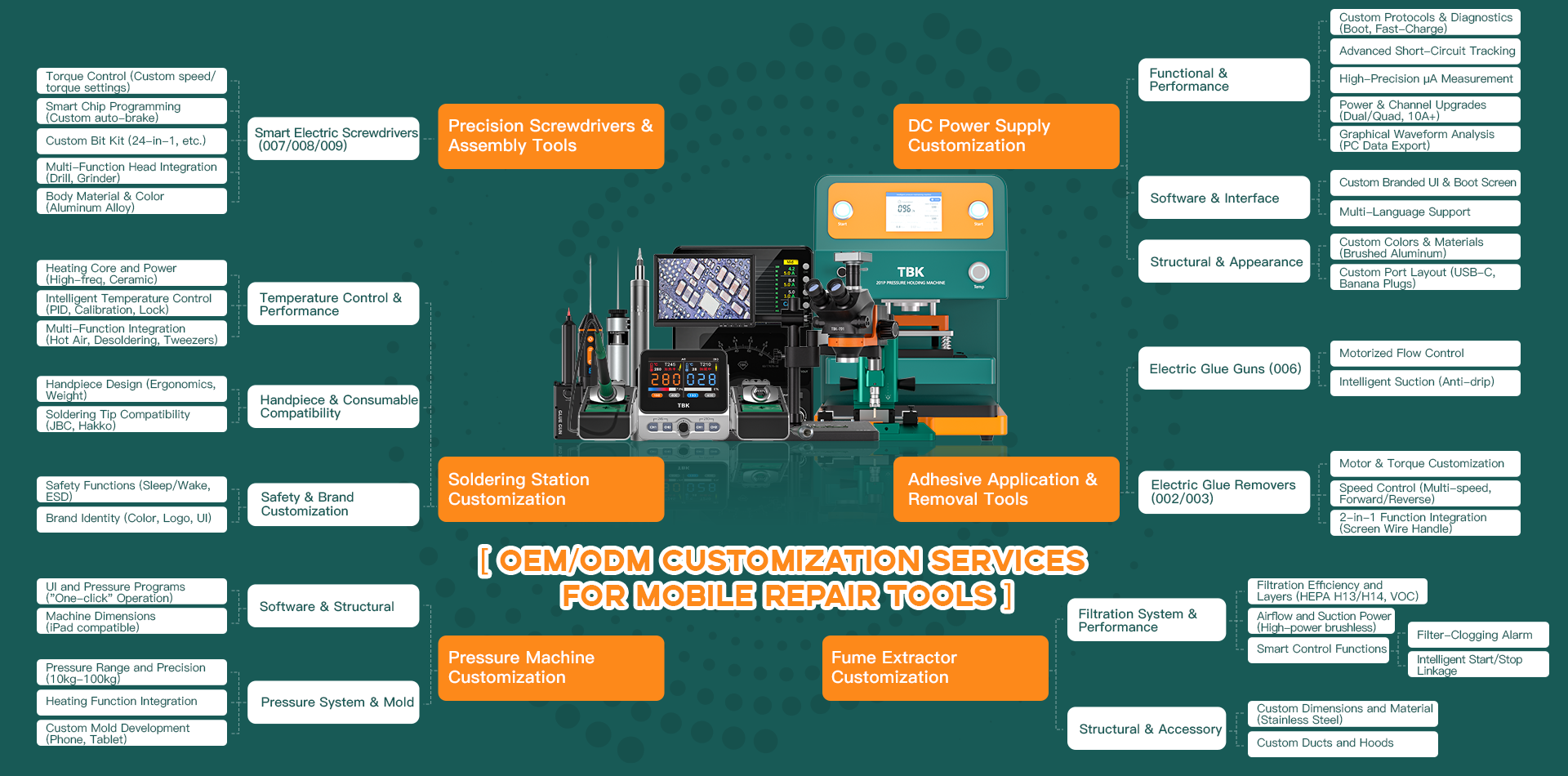 İşlevsel ve Performans Özelleştirmesi Özel Protokoller ve Tanılama: En yeni telefonlar için tescilli önyükleme ve hızlı şarj protokollerini önceden yükleyin. Gelişmiş kısa devre izleme veya yüksek hassasiyetli μA ölçümü gibi özel modüller ekleyin. Güç ve Kanal Yükseltmeleri: Tabletler ve dizüstü bilgisayarlar gibi daha büyük cihazların onarımı için çok kanallı (çift, dörtlü) veya daha yüksek güçlü (10A+) sürümler geliştirin. Dalga Formu Analizi: Gelişmiş arıza teşhisi için USB aracılığıyla PC verilerini dışa aktaran grafiksel, gerçek zamanlı bir dalga formu ekranına yükseltin. Yazılım ve Arayüz Özelleştirmesi Özel Markalı Kullanıcı Arayüzü: Benzersiz bir kullanıcı arayüzü ve önyükleme ekranı tasarlayın ve şirket logonuzu doğrudan yazılıma gömün. Çoklu Dil Desteği: Küresel hedef pazarlarınıza uyması için özel dil paketlerini önceden yükleyin. Yapısal ve Görünüm Özelleştirmesi Özel Renkler ve Malzemeler: Marka kimliğinize uyması için özel tema renkleri, kasa malzemeleri ve yüzeyler (örneğin, fırçalanmış alüminyum) seçin. Özel Bağlantı Noktası Düzeni: Ön veya arka panellerdeki tüm giriş/çıkış bağlantı noktalarının türünü (örneğin, USB-C, muz fişleri) ve düzenini özelleştirin